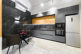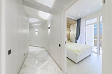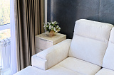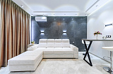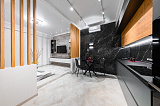 Внутренняя отделка – это дорогой дизайнерский ремонт. Стилистика интерьера объединяет в себе два, казалось бы, абсолютно противоположенных направления – лофт и классицизм. Дизайнерам удалось соединить эти два стиля невероятно гармоничным образом. Установленная мебель идеально вписывается в концепцию пространства.