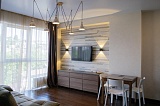Общая площадь предложения – 40 квадратных метров. Спальная комната тут изолирована, а гостиная совмещена с кухонной зоной. Идеальна для жизни семей до 3 человек. Есть небольшой открытый балкончик с живописным видом на набережную реки Псахе.