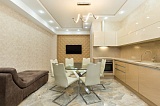 Во всех комнатах установлены кондиционеры, подключен интернет. Санузел укомплектован очень дорогой сантехникой производства Италии. Напольное покрытие – мраморная плитка, в спальнях – паркетная доска. Светильники и люстры производства Чехии и Франции.