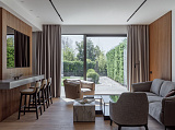 Уникальная особенность квартиры – собственная зеленая терраса площадью 25 метров. От посторонних глаз она скрыта за зеленой изгородью. Здесь можно оборудовать полноценную зону для отдыха на свежем воздухе, например, установить джакузи или создать зону для принятия солнечных ванн.