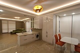 Очень светлая квартира с новым, качественным ремонтом. Зоны разделены на кухню/столовую, большую гостиную и спальную комнату. Встроенная техника и мебель остается для Вашего удобства.