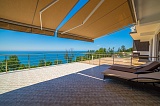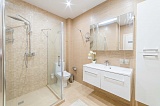 Общий метраж предложения – 123 квадратных метра. Выделено две изолированных спальни, а гостиная объединена с кухонной зоной. Обе спальни с выходом на террасу, которая в настоящий момент выполняет роль зоны для отдыха. Здесь установлены шезлонги и теневые тенты, поэтому наслаждаться приемом солнечных ванн, Вы можете, не покидая пределов своего жилища.