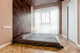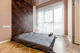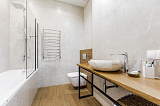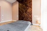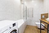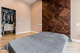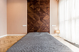 Площадь квартиры составляет 45 квадратных метров. Спальная комната изолирована, а гостиная совмещена вместе с просторной кухней. Идеально подходит для семей из 2-3 человек.