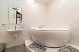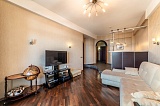 - просторная гостиная комната, которая оформлена дорогой мягкой мебелью, журнальным столом и современным телевизором;