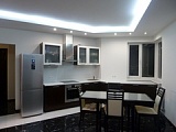 Квартира: Квартира состоит из 3-х комнат общей площадью 105 м2. Входная металлическая сейфовая дверь, установлены металлопластиковые стеклопакеты европейского производства. 2 с/у.В ванной комнате установлена итальянская сантехника и санфаянс, пол и стены облицованы плиткой производства Италии. Просторный зал грамотно поделен на две зоны — зона отдыха, и, собственно, столовая. В столовой установлена дорогая кухня эксклюзивного производства, холодильник, стиральная машина и плита. Три сплит-системы «Panasonic», расположены в разных комнатах, позволяют равномерно распределять прохладу и тепло по всем помещениям. Итальянская мягкая мебель в зале и спальне позволяет получать максимальный комфорт от отдыха. В квартире установлены итальянские межкомнатные двери, поражающие своей изящностью форм и линий.50% квартиры оборудованы теплыми полами.