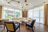 Квартира уже полностью готова для жизни. Внутри выполнен дорогой дизайнерский ремонт, который самым гармоничным образом сочетает в себе сразу несколько стилистических веяний. Мебель и бытовая техника подобраны в соответствии с общей концепцией оформления!