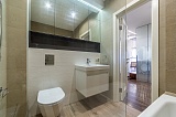 В отделке квартиры использованы дорогостоящие материалы, отличающиеся высоким качеством и эстетикой. Грамотно подобранный декор и домашний текстиль служат гармоничным дополнением общей картины.