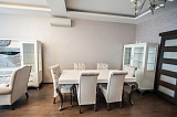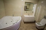 Площадь квартиры – 170 м2. Полностью укомплектована мебелью и бытовой техникой. Интерьер выполнен в достаточно сдержанном и лаконичном стиле с некоторыми элементами классицизма. В оформлении внутреннего пространства квартиры использовались дорогие материалы, такие как мрамор, красное дерево, натуральная кожа, итальянская плитка и т.д. Санузел совмещенный, установлена ванна-джакузи и душевая кабинка.