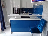 Планировка квартиры весьма интересная, удобная кухня со встроенной техникой и барной стойкой, гостиная с выходом на большой угловой балкон, и две изолированные спальни, также с выходом на балкон.