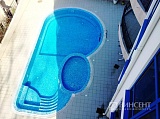 Для того чтобы окунуться в воду под открытым небом, необязательно идти к пляжу: прямо на территории комплекса расположены два бассейна. Один находится на террасе, которая спроектирована на крыше комплекса, другой — на придомовой территории. Он оборудован гейзером и отделан плиточной мозаикой.
