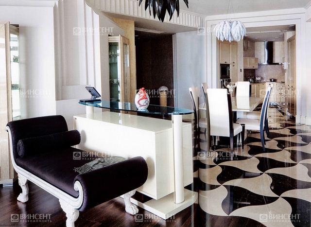 Квартира расположена на семнадцатом этаже, поэтому из ее огромных панорамных окон открывается шикарный вид на бескрайние просторы Черного моря! Однако, хороший вид из окон – это отнюдь не единственное достоинство данного предложения. Отдельного внимания заслуживает умопомрачительный ремонт, который не оставит равнодушным даже самых требовательных и искушенных ценителей прекрасного! Интерьер квартиры создавался под чутким руководством Наталии Авдеенко – ведущего дизайнера московской архитектурной студии «АРТ-ФАБРИКА». Стиль интерьера – ар-деко. По словам автора дизайн-проекта, в стилистическом оформлении этой квартиры ей хотелось отразить всю легкость и чувство бесконечного праздника, которые присущи городу Сочи. Отметим, что получилось это у Наталии просто великолепно! Квартира полностью укомплектована мебелью, которая подбиралась в полном соответствии с общими стилистическими особенностями. Кожаные диваны, бархатные кушетки, глянцевые поверхности, хрустальные светильники, а также обилие натуральных тканей в виде льна и шелка придают внутреннему убранству этой квартиры по-настоящему стильный и роскошный вид!