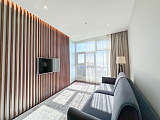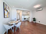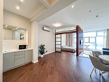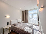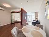С первого взгляда апартаменты покоряют атмосферой уюта, света и современного изящества. Здесь выполнен дизайнерский ремонт, созданный с учетом актуальных тенденций и в то же время — с уникальным почерком. Интерьер оформлен в светлых тонах с акцентом на натуральные фактуры, мягкую текстуру тканей и продуманное зонирование. Всё это создает ощущение простора даже при относительно компактной площади.