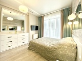Предлагаю к продаже апартамент с ремонтом в новом жилом комплексе "Актер". Апартамент очень удачно распланирован в три отдельные спальни и в одной из спален находится две кровати. Окна выходят на тихую сторону с прекрасным видом на море и эта сторона гостиницы Рэдиссон-Лазурная. Сам жилой комплекс расположен в одном самых живописных районов города Сочи: Приморье-Благодать. Комплекс находится под постоянной охраной и въезд на территорию только через КПП. На территории постоянно дежурят посменно восемь профессиональных охранника. На территории несколько бассейнов, тренажерный зал Ворд-аут, множество ресторанов и всевозможных развлечений, включая собственный пляж.