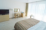 Главное достоинство, конечно же, просторная терраса с видом на море. Любоваться восхитительной морской панорамой вы можете, лежа у себя в постели. Это ли не мечта?