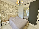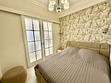 Квартира оформлена в классическом стиле, который создает атмосферу уюта и гармонии. Вся мебель и техника подобраны в соответствии с общей концепцией интерьера, что позволяет создать гармоничное пространство для жизни. Спальня оформлена в спокойных тонах, создавая атмосферу для отдыха и сна. Большая двуспальная кровать с мягким изголовьем и вместительный шкаф для одежды позволят вам хранить все необходимые вещи под рукой.