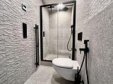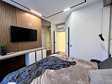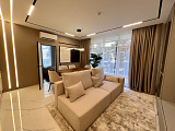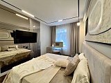 Предложение отлично подойдет для жизни людей, которые по-настоящему ценят свободу своего пространства. Все комнаты очень просторные и наполненные естественным светом. Одна из спален располагает индивидуальным санузлом и обособленной гардеробной зоной. Есть открытая терраса, с которой открывается действительно потрясающий вид на акваторию Черного моря и панораму курортного центра Сочи.