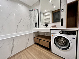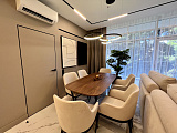 Внутри квартиры выполнен дорогостоящий ремонт, что только подчеркивает престижный статус предложения. Дизайн интерьера тут продуман в самых мельчайших подробностях. Авторы проекта с должным вниманием отнеслись ко всем деталям: от материалов отделки до фурнитуры, текстиля и декора. Оценить эстетику в самом полном объеме вы сможете в рамках персонального визита. Кроме того, вы сможете насладиться невероятно легкою и приятной атмосферой, царящей внутри – ее невозможно передать дистанционно.