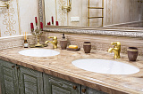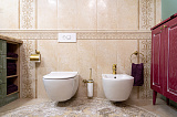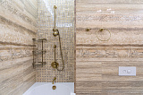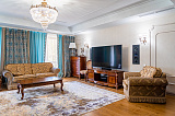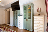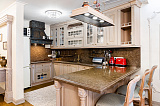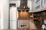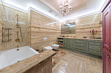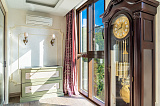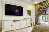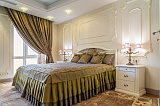 Интерьер оформлен в классическом стиле. Все комнаты полностью укомплектованы лучшей мебелью и новой элитной бытовой техникой. Дизаин подобран в соответствии с общей стилистикой оформления квартиры.