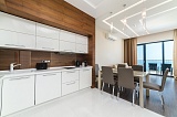 Вашему вниманию предлагаются шикарные дизайнерские апартаменты в яхтенном стиле. Отделка настоящим деревом подчеркивает статусность квартиры, дорогая мебель дополняет замысел дизайнера. Общая атмосфера квартиры очень располагает, потрясающий вид из всех окон на море просто завораживает, и создает впечатление как будто вы вышли на капитанский мостик. Шикарная просторная терраса, с выходом в спальню или в гостиную, спальная комната с гардеробной и собственным санузлом и душевой, просторнейшая гостиная, столовая зона, кухонная зона, вторая спальная комната, коридор с гардеробной и гостевой санузел - это все одна уютная квартира!