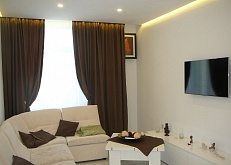 Площадь апартаментов – 49 квадратных метров. Внутреннее пространство здесь распланировано так: