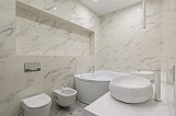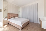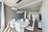 В квартире сделан дорогостоящий дизайнерский ремонт, который также отличается высокой эстетикой. В оформлении пространства здесь преобладает светлая палитра красок, которая визуально делает его еще более просторным и уютным.