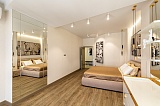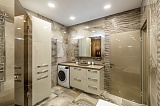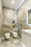 Внутренняя отделка – дорогостоящий дизайнерский ремонт, покоряющий своей эстетикой и шиком. Продумана каждая деталь – вплоть до фурнитуры в санузлах. Установлена итальянская мебель, бытовая техника от ведущих брендов с мировым именем.