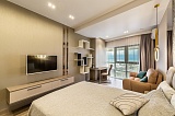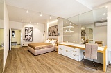 В этой квартире выделено 2 просторные изолированные спальни и гостиная комната, объединённая вместе с кухней. Просторная прихожая комната, 2 санузла. В каждой из спален предусмотрено рабочее пространство, где можно удобно расположиться с ноутбуком или документами.