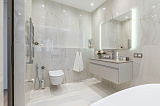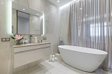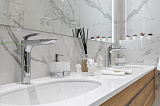 Бытовая техника производства Kuppersbusch, Liebherr. Декор от Loius Vuitton, Hermes и Nachtmann, Lilу Art. Сантехника - Villeroy & Boch.