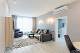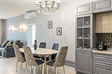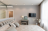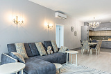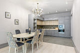 Внутри выполнен дорогостоящий ремонт, который не требует абсолютно никаких дополнительных вложений. Стилистическая основа оформления - современная классика, покоряющая лаконичностью, элегантностью, неброской роскошью. Мебель, декор и бытовая техника, находящиеся внутри, идеальным образом вписываются в общую стилистическую концепцию.