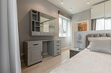 Площадь представленной квартиры – 130 кв.м. За счет грамотного подхода к вопросу организации пространства, она идеально подойдет для единовременного проживания семей из 2-4 человек. Две просторные изолированные спальни, большая гостиная, совмещенная с кухонной зоной, просторная терраса.