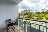 Территория комплекса полностью закрыта для посторонних. Есть собственное парковочное пространство для автомобилей, благоустроенные зоны для отдыха детей и взрослых. Большое внимание уделено вопросу сервиса.