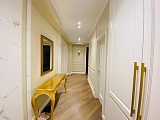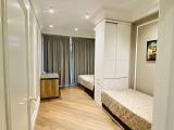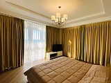 Апартаменты очень светлые, уютные и просторные, а самое главное очень продуманная планировка: большой и светлый зал-гостиная, совмещенный с кухонной зоной, три отдельные спальные комнаты, 2 просторные террасы с потрясающим видом на морское побережье курорта, а так же 3 раздельных санузла. Апартаменты полностью обставлены мебелью и оборудованы всем необходимым для комфортного проживания.