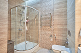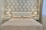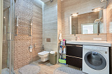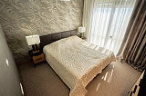 Во второй спальне витражные окна выходящие на южную сторону с видом на море, сплит система, телевизор. Так же в квартире есть большая гардеробная со встроенными шкафами. Сан узел совмещенный, есть душевая кабинка, стиральная машина.