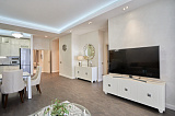 Отдельное внимание в ремонте уделили просторной кухне с дорогой бытовой техникой, большим кухонным столом и гостиной с видом на море. Так же в гостиной есть большой диван со столиком и телевизором. В каждой комнате установлены кондиционеры, проведен скоростной интернет, теплые полы. Установлен отдельный газовый котел. Низкие коммунальные платежи.