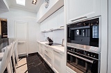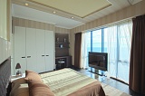 Квартира, представленная нами, является дизайнерским шедевром наряду с самим комплексом. Две просторные спальни с туалетами и душевыми, дистанционно открываемыми шторами, зоной ТВ, женским трюмо, кабинетом потрясает своей органикой и ансамблем, все это дополняет и приумножает панорамный вид на море сквозь витражи. Просторная кухня-гостиная и столовая зона готова приютить как Вас, так и Ваших гостей. Вы можете хранить одежду в отдельной гардеробной. Эксклюзивность предлагаемой квартиры отражена в каждой детали.