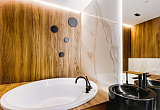 Квартира оформлена в эстетике дорогого современного дизайна. Каждая зона проработана до мелочей, а гармония фактур и оттенков создаёт ощущение цельного, продуманного пространства.