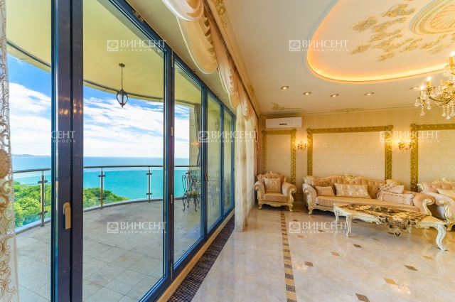 Повод особой гордости – шикарная терраса с умопомрачительным обзорным видом на морскую акваторию. Здесь оборудована зона для отдыха с комплектом мебели.