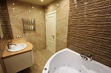Сама квартира очень просторная и светлая. Площадь ее равна 83м2, 21 этаж. Спальни, как и в большинстве элитных новостроек, непроходные, а кухня объединена с гостиной комнатой. Санузел раздельный. Есть большой открытый балкон террасного типа, который можно укомплектовать уличной мебелью, превратив его тем самым в летную столовую зону. Интерьер квартиры – это, своего рода, произведение искусства! Недаром над его созданием трудились лучшие дизайнеры города Сочи! Стены комнат оклеены дорогими обоями на текстильной основе, полы – мраморная плитка и лакированная паркетная доска.