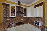 Интерьер квартиры выполнен в духе современной классики, покоряющей своим великолепием и шиком. Также, присмотревшись, можно заметить отчетливо проявляющиеся элементы стилистического веяния барокко и эклектики. Рассматривая фотографии этой квартиры можно отметить, что вся мебель идеально подобрана в общем соответствии со стилем квартиры. Спальня от «DE ANGELI», кухонный и столовый гарнитуры от «Cappelletti», сантехника от «SHERLE WAGNER».