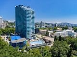 Панорамные Апартаменты 130 метров, с 2 спальнями в уникальном доме Карат , расположены в Сочи в отеле Хаятт. Отделка выполнена материалами высокого класса. Натуральный итальянский Паркет. Керамогранит. Мрамор. Элитные апартаменты мебелированы Итальянской Мебелью Руджиано. Сантехника немецкого производства