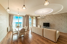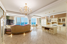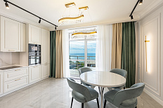 Рынок элитной недвижимости в Сочи довольно богат выбором, но похвастаться высокими потолками как во дворце может далеко не каждая элитная квартира или апартаменты. Данная квартира - это произведение искусства, когда заходишь в нее, попадаешь не в квартиру, а реально в дворец. Высокие потолки, дворцовый стиль, огромные люстры, окна, оригинальные решения дизайнеров, не оставят Вас равнодушными! Так же квартира обставлена мебелью подобающей данному стилю, что в общем создает атмосферу уютного и комфортного прибывания с восторгом! Зайдя один раз в эту квартиру Вам не захочется из нее выходить, пока вы не переедете жить в неё! Спешите, подобных предложение в городе просто нет!