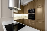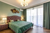 Общая площадь квартиры – 101 м2. Пространство внутри поделено на две спальных комнаты, кухню-гостиную, совмещенный санузел, отдельную гардеробную. Повод для особой гордости – просторная терраса, с которой открывается просто умопомрачительный вид! Выход на террасу возможен как из хозяйской спальни, так и из гостиной комнаты.