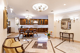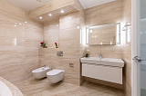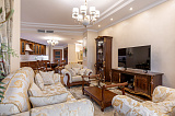 Просмотрев фотографии, вы можете отметить для себя факт стильного и современного ремонта. В основе интерьера здесь лежит классика, которая актуальна всегда! Установлена дорогостоящая мебель производства лучших фабрик Италии и Франции. Также квартира полностью укомплектована бытовой техникой. Возможность переезда после оформления сделки – это еще один огромный плюс в копилку достоинств.