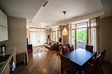 Внутреннее оформление выполнено в стиле элегантной классики с использованием качественных материалов и мебели от ведущих европейских брендов. Каждая деталь подобрана с вниманием к стилю и удобству.