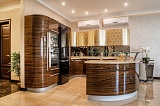 Апартаменты очень грамотно распланированы, большая хозяйская спальня с двумя гардеробными (фабрика Gvarneri). Гостевая спальня с шикарной кроватью отделанной натуральной кожей, шпон редкого макасара. Шикарная кухня - гостиная, кухня итальянской марки Latini. Верхние шкафы покрыты с двух сторон поталью (сусальное золото), нижняя часть-эбеновое дерево. Дорогая встроенная техника, кофемашина и духовка фирмы DeDietrich.