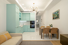 Общая площадь апартаментов, представленных Вам, составляет 130 м2. Одним из ключевых преимуществ данного предложения является удобная планировка. Пространство разделено на просторную кухню-гостиную, две спальные комнаты, две гардеробные и два санузла. Грамотный подход к расположению предметов мебели и аксессуаров виден с первого взгляда. Каждый элемент в интерьере сочетается друг с другом и создаёт общую картину, при этом являясь уникальным дизайнерским объектом. Вся мебель в спальных комнатах изготовлена в Италии у именитых дизайнеров, в ванных комнатах установлено высококачественное сантехническое оборудование из керамики Villeroy&Boch. Дорогой кухонный гарнитур (Италия) и мягкая мебель для гостиной были заказаны по индивидуальному проекту.