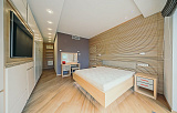 Изысканная внутренняя отделка DeLuxe представляет собой сплав современных тенденций и передовых дизайнерских решений, где каждая деталь выдержана в духе изысканности и практичности. Элегантная мебель, отличающаяся легкостью форм, создает единый стильный ансамбль, а грамотно организованное освещение акцентирует внимание на четкости линий и лаконичности обстановки.