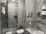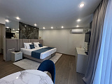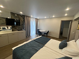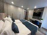 Площадь апартаментов – 56 м2. Две королевские спальни, отдельная гардеробная зона, просторный санузел – это действительно идеальное предложение для жизни и отдыха в курортном городе. Отдельно стоит отметить факт дорогостоящей дизайнерской отделки и до мелочей продуманного зонирования. В каждой спальне – двуспальная кровать, пространство для работы, зоны для хранения личных вещей. Установлена бытовая техника и все необходимое климатическое оборудование.