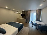 Апартаменты, как мы уже отметили выше, входят в состав нового жилого комплекса, расположенного у самого берега Черного моря. В шаговой доступности тут на самом деле есть все, что только может потребоваться для комфортного быта и отдыха: от ресторанов и кафе до образовательных и медицинских центров.