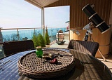 Терраса в квартире гарантировано станет вашим самым любимым местом для отдыха. Тут есть кедровая бочка и бассейн. Идеально для тех, кто хочет отдыхать, не покидая пределов своего жилища!